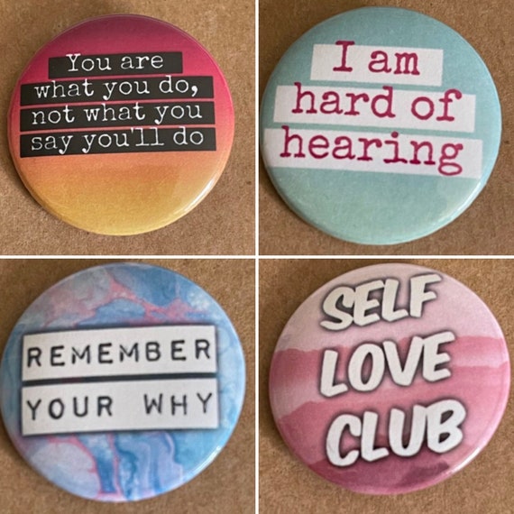 Mental Heath Quote Pinback Buttons 1 5 Inch Self Love Club Etsy
